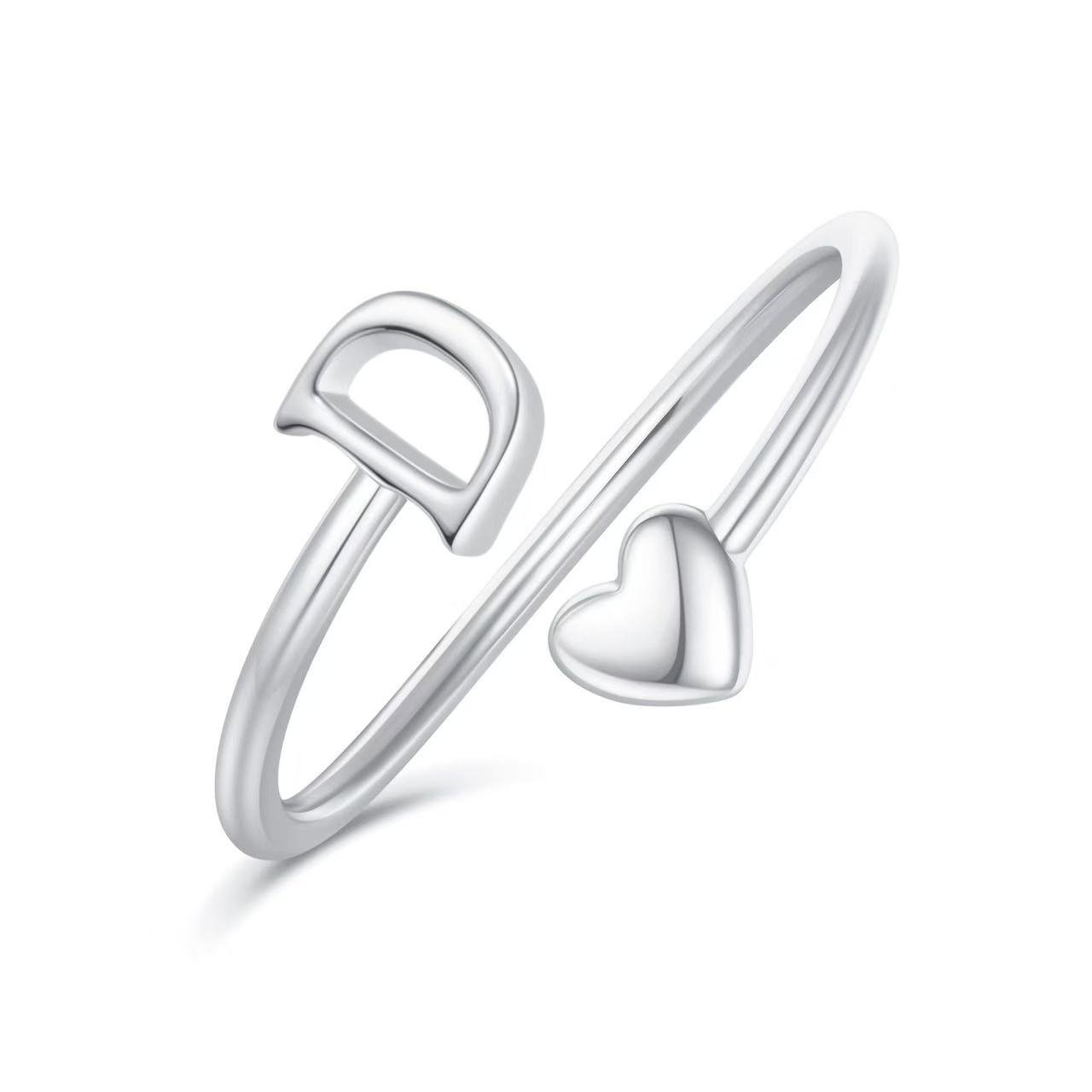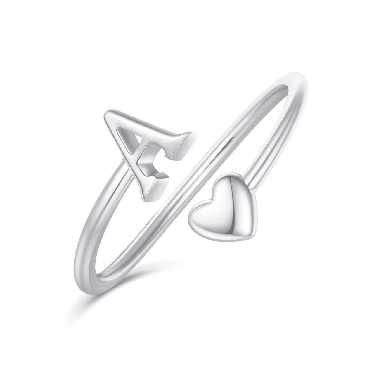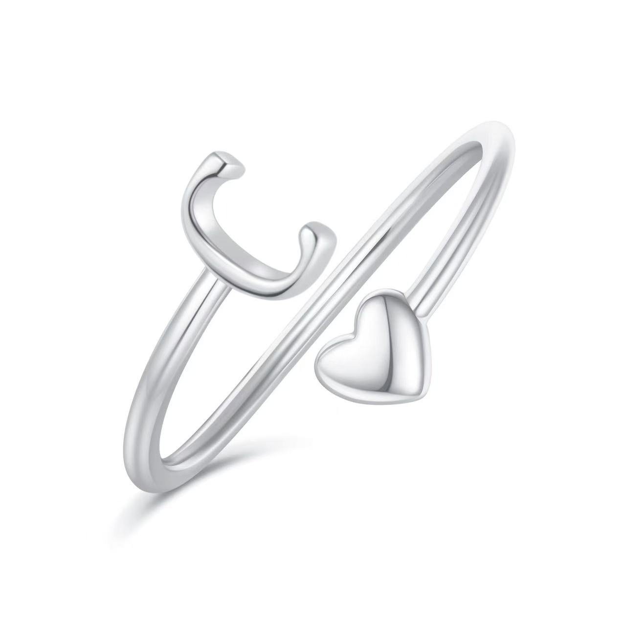Custom Initial Ring – Minimalist Open Letter Ring with Heart Font | Personalized Handcrafted Jewelry Gift | Adjustable Polished Band, Made to Order 数量