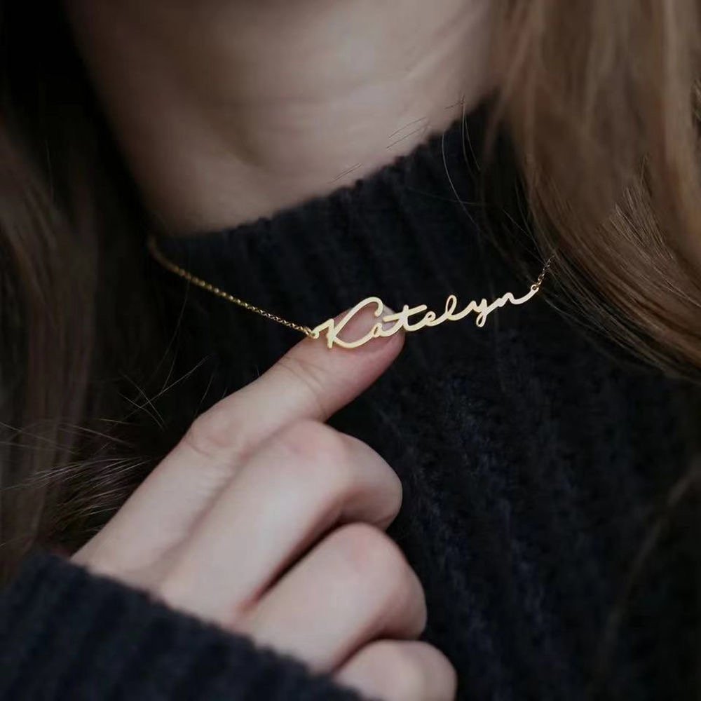 Custom Necklace【 A Name 】with Free Engraving Personalized English Letter Necklace Cross Chain Necklace Birthday Gift for Female Students