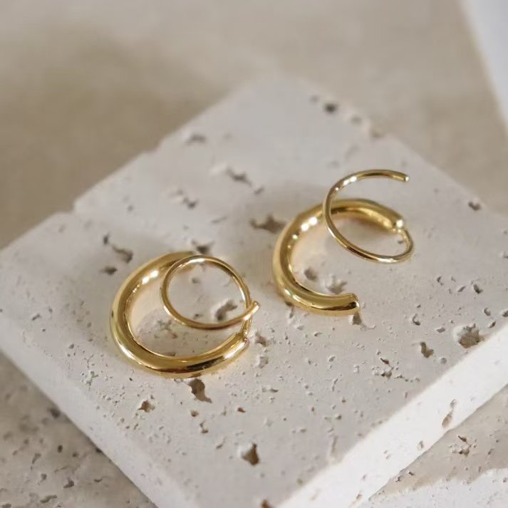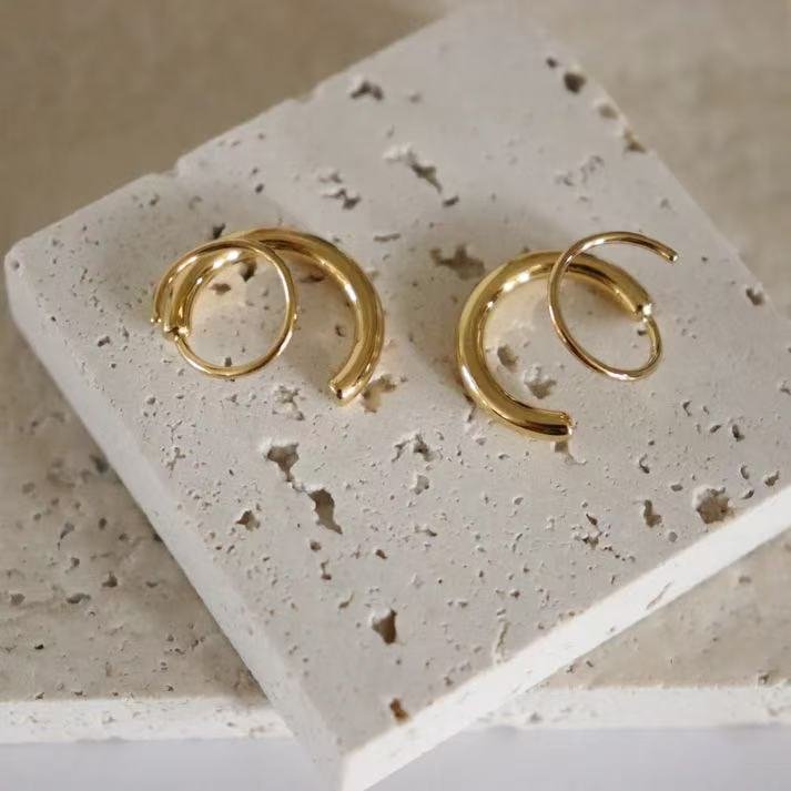Handmade Titanium Steel Spiral Hoop Earrings – Double Layer Twisted Design, 18K Gold Plated Minimalist Earrings for Women, Custom Made with Unique Meaning