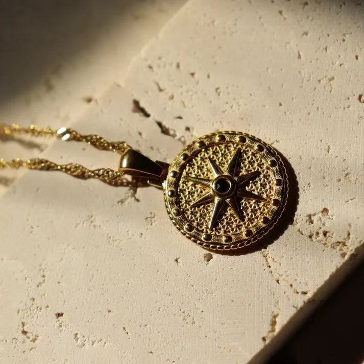 Handmade Vintage Star Pendant Necklace – 8-Point Star Titanium Steel Chain for Women, Minimalist Celestial Jewelry, Custom Made with Meaning