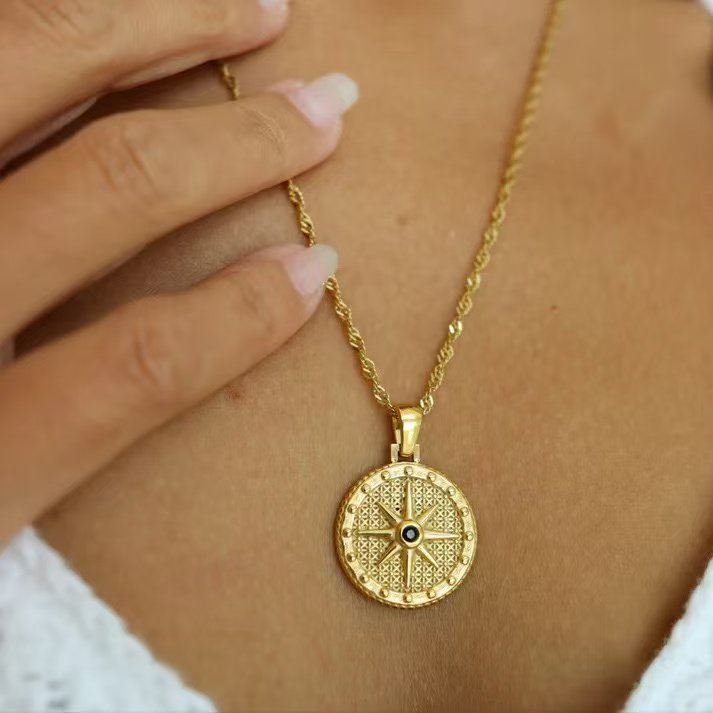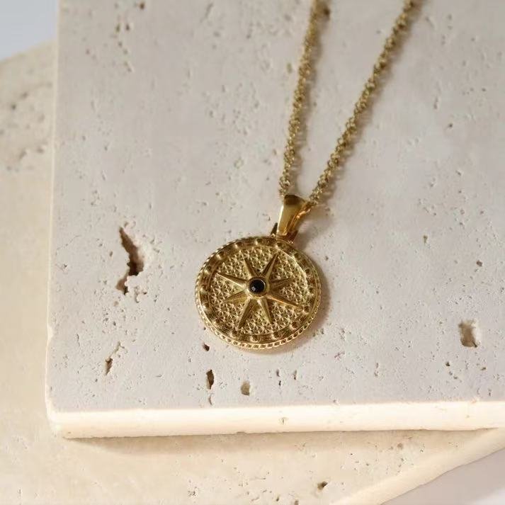 Handmade Vintage Star Pendant Necklace – 8-Point Star Titanium Steel Chain for Women, Minimalist Celestial Jewelry, Custom Made with Meaning 数量