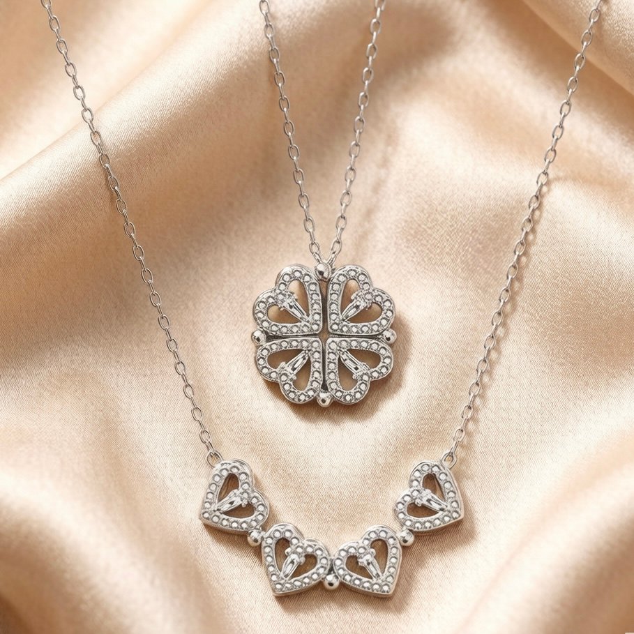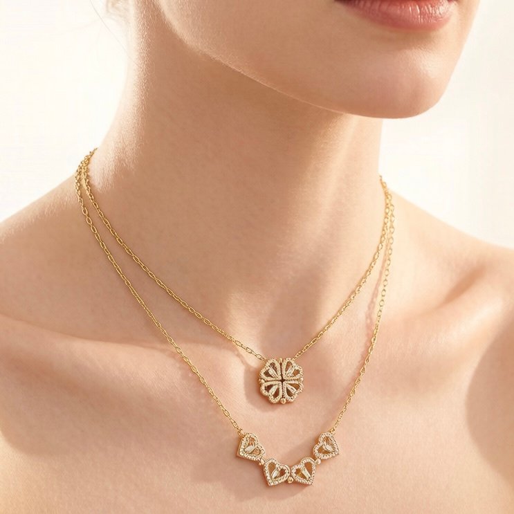 One Necklace, Two Looks – Wear the floral pendant solo for minimalist charm, or layer with the heart arc for romantic depth. Mix, match, and make it yours.