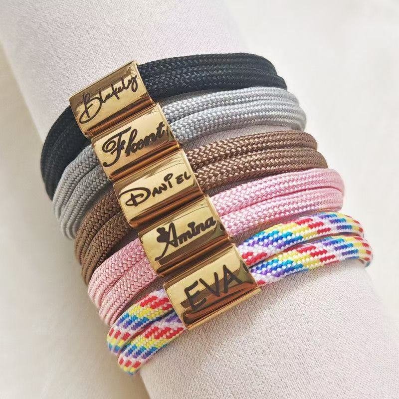 Personalized Engraved Name Braided Bracelet – Custom Handmade Rope Bracelet, Couple Gift, Best Friend Jewelry, Adjustable, Waterproof 数量