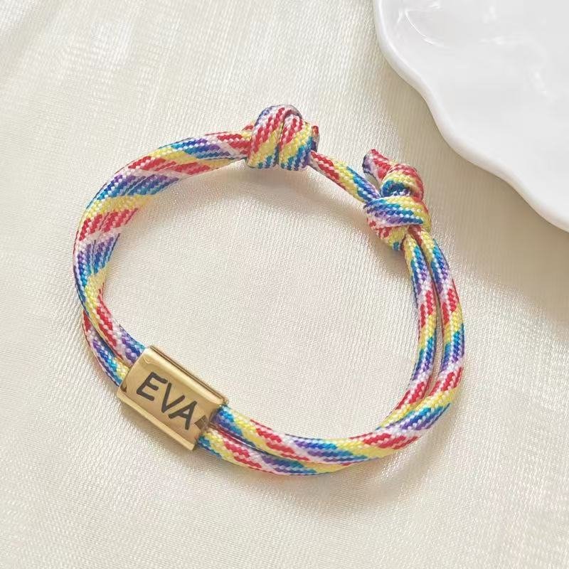 Personalized Engraved Name Braided Bracelet – Custom Handmade Rope Bracelet, Couple Gift, Best Friend Jewelry, Adjustable, Waterproof