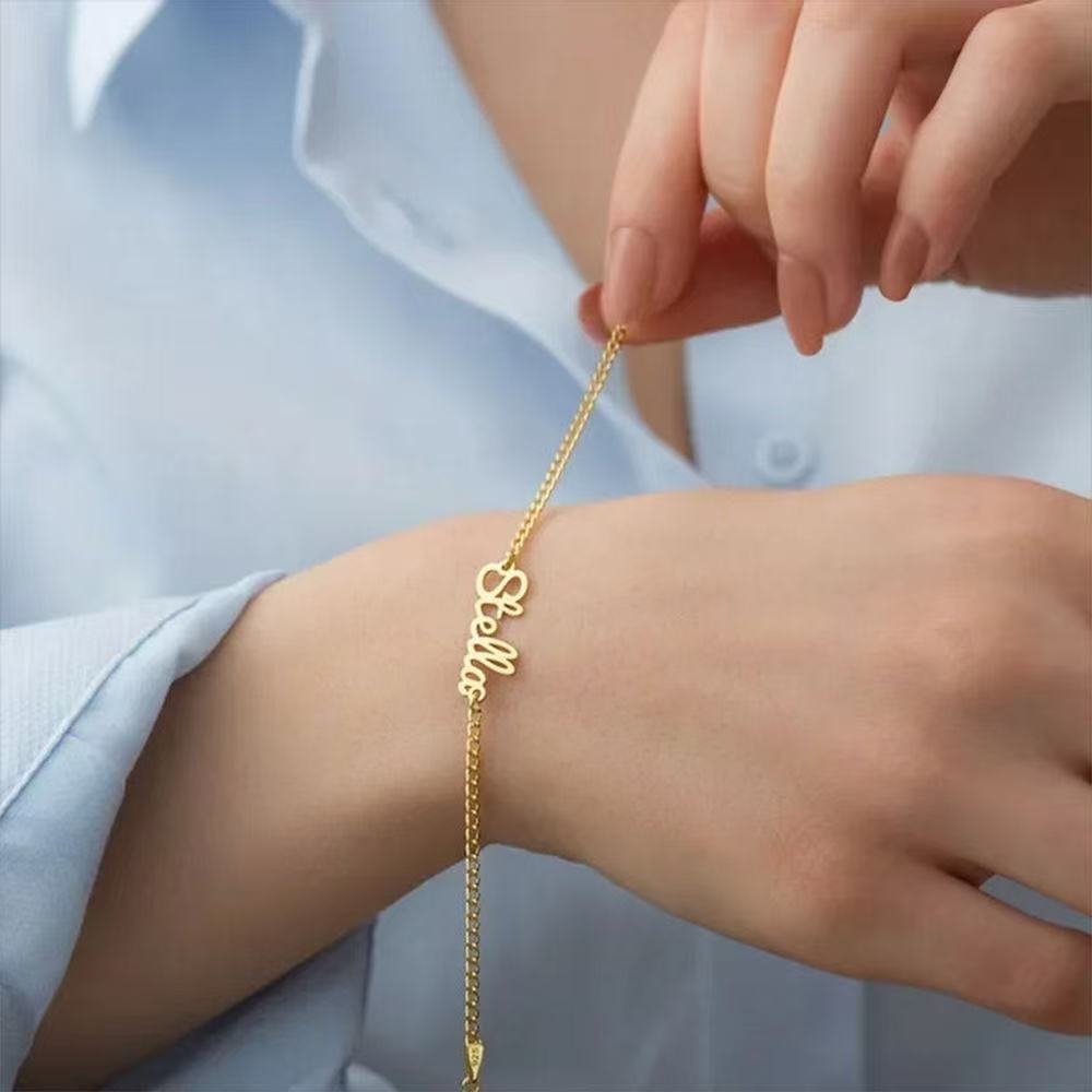 Personalized Name Bracelet – Custom Letter Cuban Chain, Tarnish-Free Stainless Steel Jewelry for Women, Students & Friends