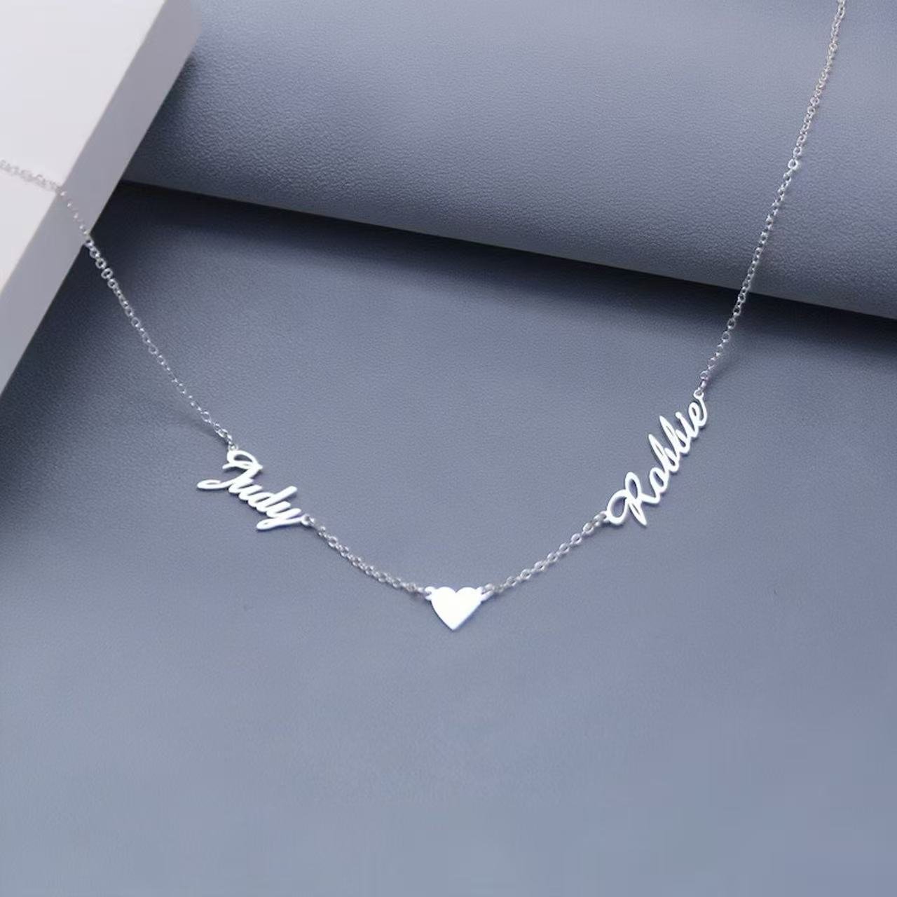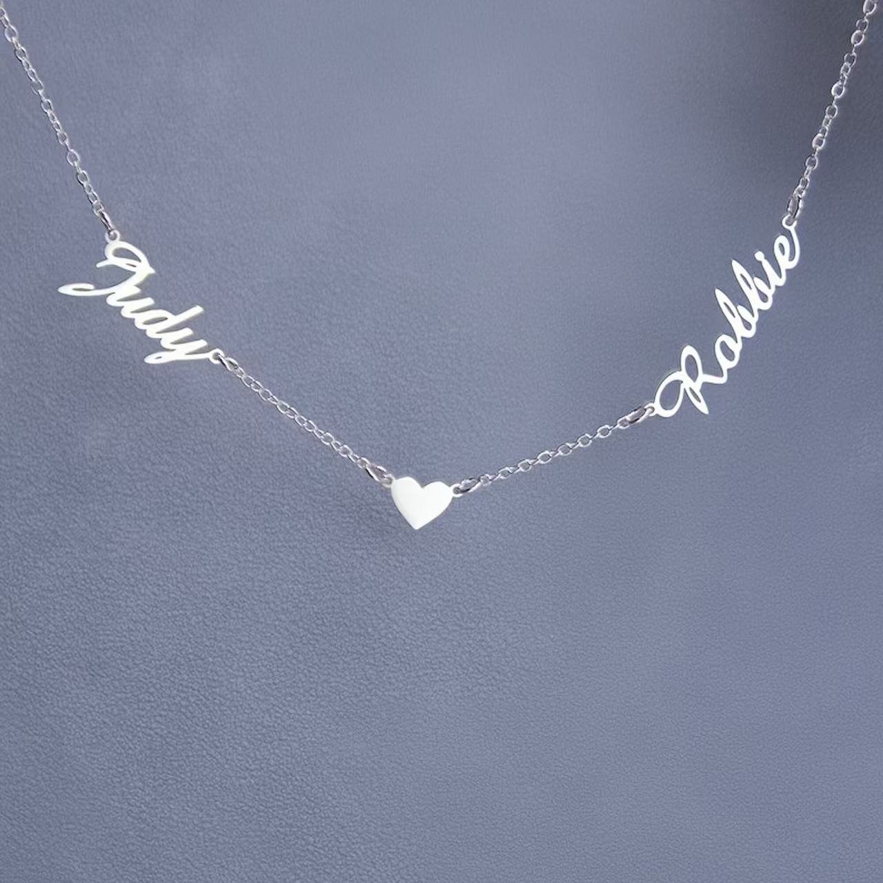 Personalized Name Necklace with Heart | Custom Letter Necklace | Multiple Names Jewelry Gift | Handcrafted Stainless Steel Pendant – Ships in 25 Days