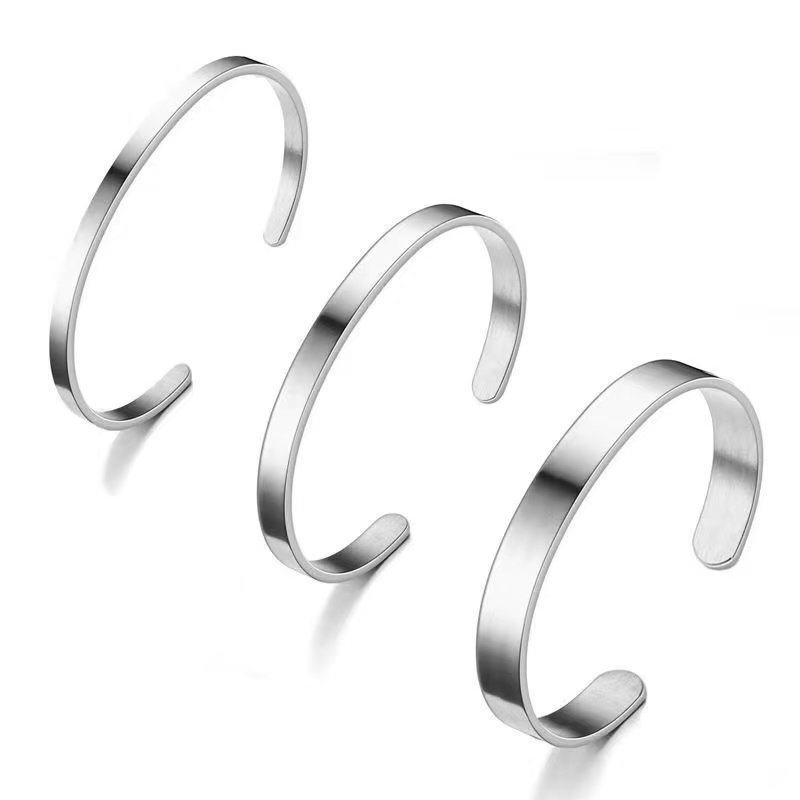 Personalized Stainless Steel Cuff Bracelet – Custom Engraved Open C-Shaped Bangle for Men & Women | Minimalist Handmade Jewelry Gift 数量
